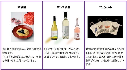 • 物産展: 桔梗屋、モンデ酒造、エンウィットが出店し、山梨の特産品を販売します。