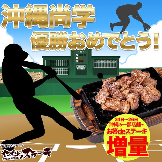 沖縄から全国へ感動を届けた沖縄尚学高校の甲子園優勝を記念し、沖縄発祥のステーキチェーン**「やっぱりステーキ」**が、沖縄県内の一部店舗でスペシャルなキャンペーンを実施します。