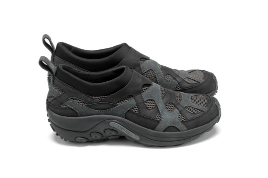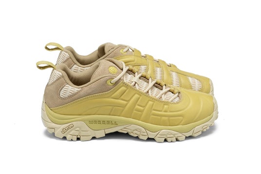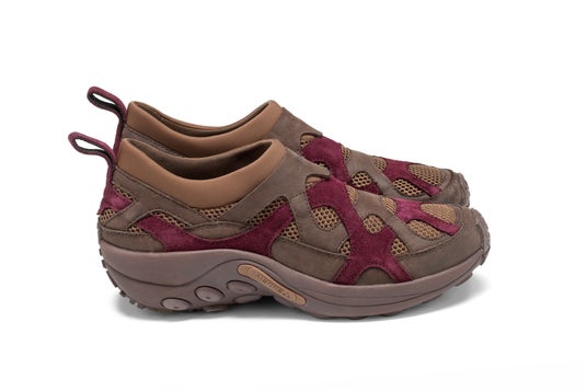 伝説的なモデル「MERRELL MANGROVE」のデザインを再構築し、アイコニックなジャングルモックのソールと融合。フルグレインレザーや高通気性メッシュをレイヤードした、実験的でモダンなデザインが目を引きます。