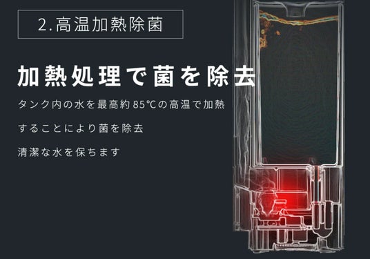 - ハイブリッド式:超音波式と加熱式の両方のメリットを兼ね備え、45dBの静音性と電気代約1/16という高い省エネ性能を実現しました。
