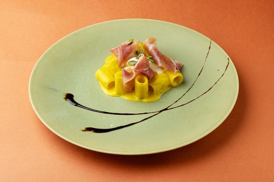 バターナッツ南瓜の豊潤な甘味を生ハムの塩味で締めた抜群のマリアージュ。ショートパスタ“リガトーニメッツェ”と共に。