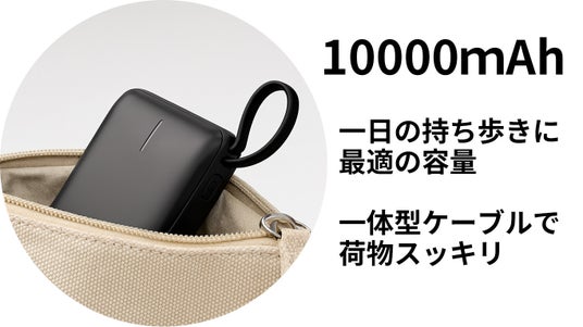 - 10000mAh: ケーブル一体型で、荷物をすっきりさせたい方に最適。