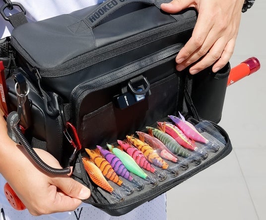 - 瞬時にエギを交換: フロントのコンパートメントには、3.5号を中心にエギを10本縦列でストック可能。狙ったサイズやカラーを素早く選べ、ヒットチャンスを逃しません。