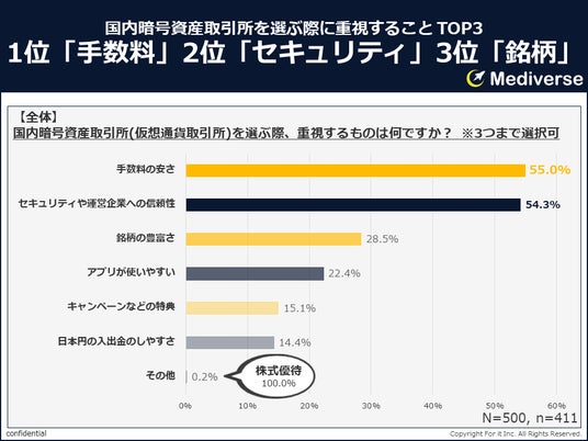 暗号資産取引所を選ぶ際に重視していることは?3位「銘柄」2位「セキュリティ」1位は?