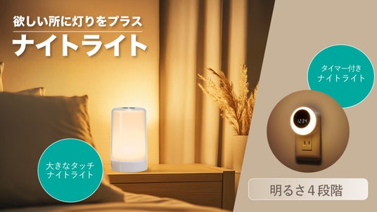 就寝前のリラックスタイムや、暗い廊下の足元灯として、様々なシーンで活躍するナイトライト。今回の新シリーズは、機能性だけでなくデザインにもこだわった製品がラインナップされる予定です。