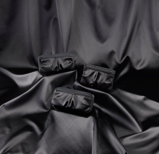 このペンケースは、モードでスタイリッシュなデザインが目を引きます。しかし、その最大の特長は、パッと目を引くドレープポケットが広がることで実現する、見た目以上の収納力です。