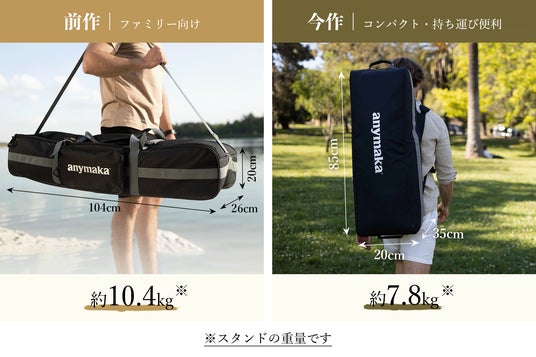 本体は約7.8kgと軽量で、付属のバックパックにコンパクトに収納可能。車がない場所でも気軽に持ち運べるので、キャンプやピクニック、出張先のホテルなど、日常のあらゆる場所が快適なリラックス空間に変わります。