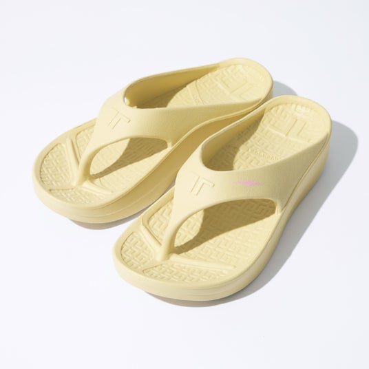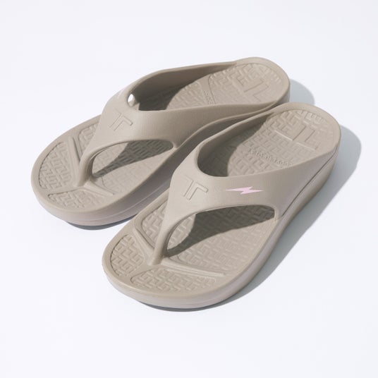 コラボレーションアイテムは、TELICのリカバリーサンダル**「FLIPFLOP ULTRASOFT」。独自開発のEVA素材による、驚くほどの軽さとフィット感はそのままに、ライトニングボルトの象徴である「イナズマ」マーク**がトング部分にデザインされています。