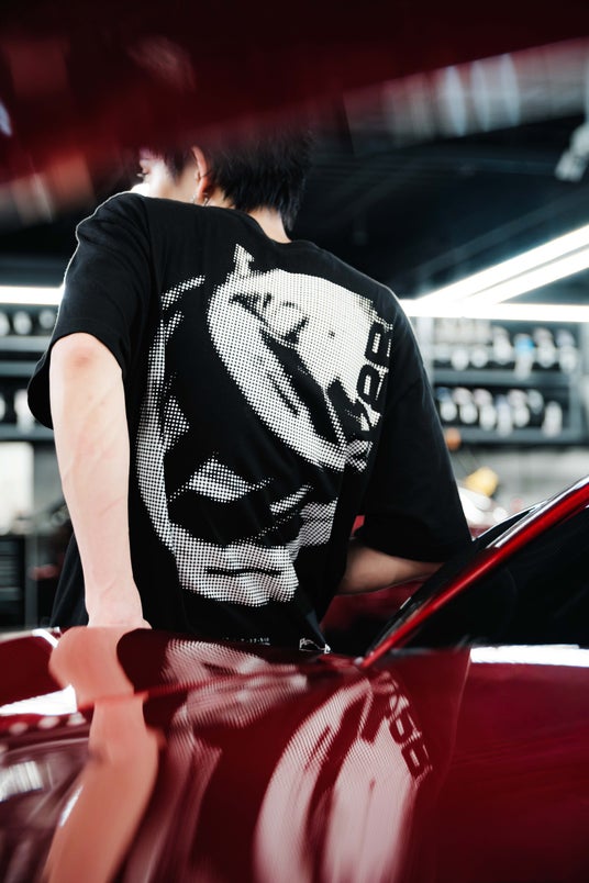 会場では、今回のコラボを記念した特別デザインのコラボTシャツも販売されます。ARTA MECHANICSとPeaches.のカーカルチャーが融合した、このTシャツは30着限定で、ポップアップ会場のみでの販売となります。