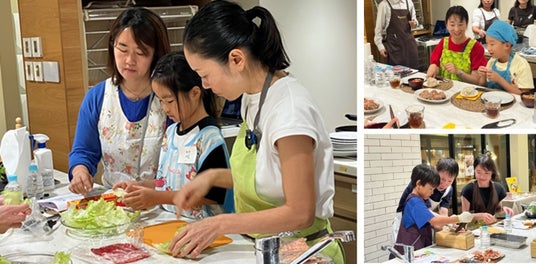 さらに、かつお節のだしが入った味噌汁と、そうでないものの飲み比べ体験では、その旨みの違いに驚く声も。料理研究家・みないきぬこ氏の指導のもと、ヤマキのかつお節を使った料理実習も行われ、親子で協力しながら楽しく調理する姿が見られました。