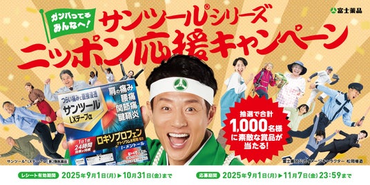 医薬品メーカーの富士薬品は、外用鎮痛消炎薬「サンツール®」シリーズの購入者を対象に、抽選で合計1,000名に豪華賞品が当たる**「サンツール®シリーズ ニッポン応援キャンペーン」**を、2025年9月1日(月)から10月31日(金)まで開催します。