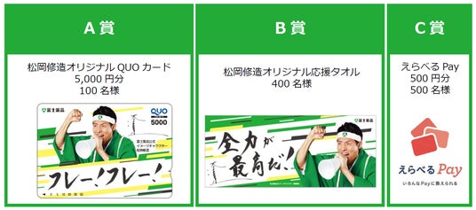 今回のキャンペーンの賞品は、富士薬品のイメージキャラクターである松岡修造さんのオリジナルグッズなど、豪華なラインナップです。