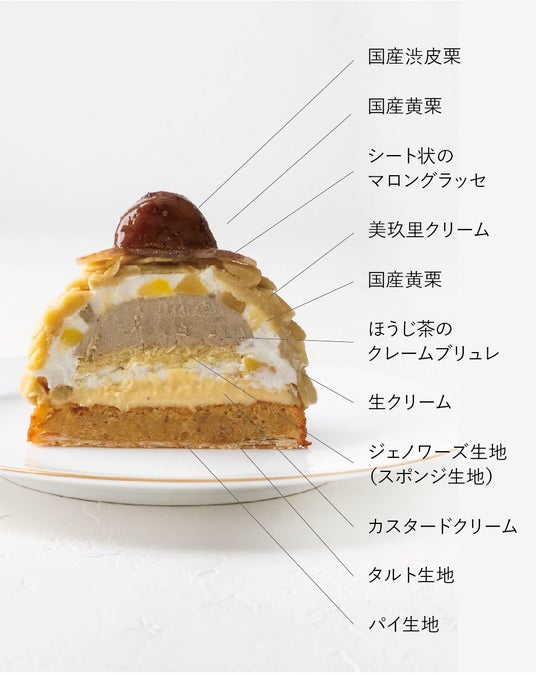 「栗の女王」と呼ばれる熊本県産の希少な和栗「美玖里」を贅沢に使用。熊本県産の和栗と和素材のほうじ茶を合わせた、特別なモンブランです。