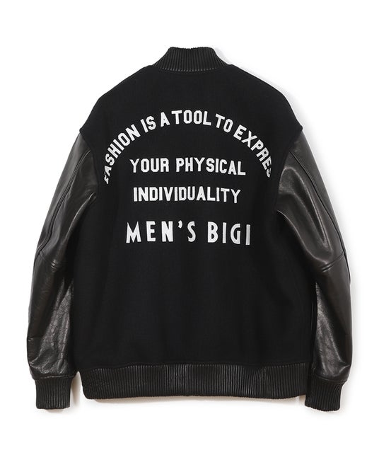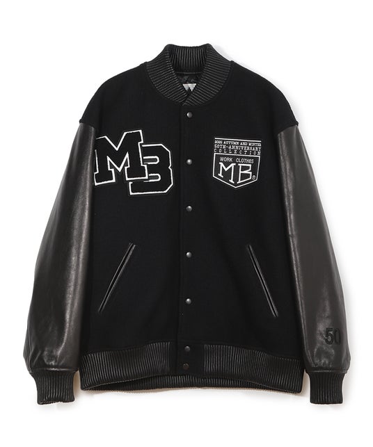 ブランド誕生50周年を祝して、創業者・菊池武夫氏が自ら手掛けた初のスタジャン。バックには、菊池氏の著書『乾杯! ロストジェネレーション』から抽出したメッセージを要約し、次世代へ届けるブランドのメッセージとして「FASHION IS A TOOL TO EXPRESS YOUR PHYSICAL INDIVIDUALITY(ファッションはあなたの身体的個性を表すツールです)」の刺繍を施しています。表地は国産のウール生地〈クレーターメルトン〉を採用した贅沢な一着。