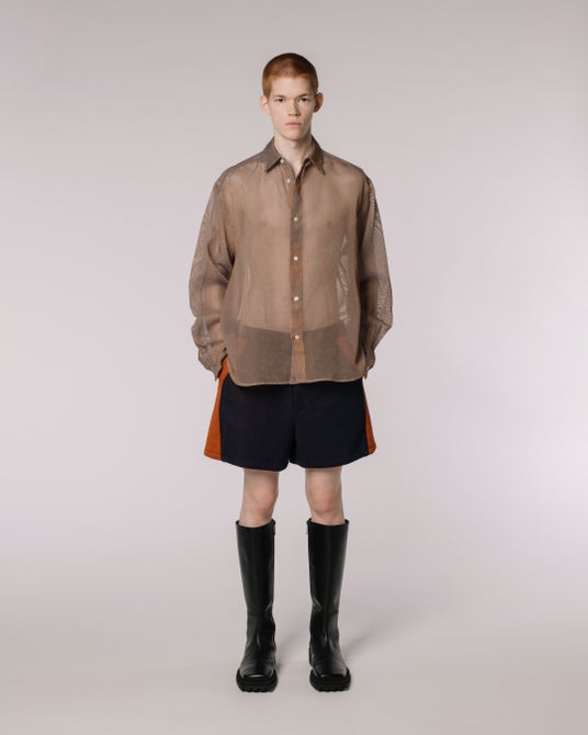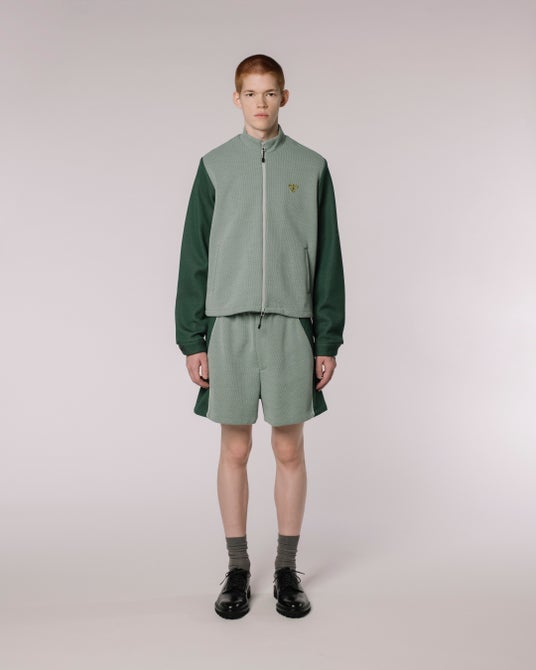 厚手のメッシュ生地を使ったスウィングトップスやハーフパンツ、ドット刺繍が施されたシャツは、従来のスポーツウェアにはない温かみと軽やかな表情を両立。ソファやラグを思わせる重厚なファブリックが、リラックスした心地よい気分を漂わせます。
