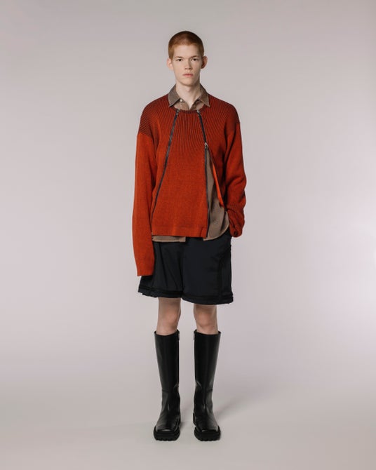 筋肉や骨格を再構築したようなパネル構造のシャツや、関節をイメージしたテーピングやパイピングが施されたテクニカルウェアなど、まるで人体解剖学から生まれたかのようなデザインが特徴です。