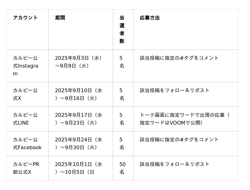 これを記念して、カルビー公式SNSを横断するスペシャルキャンペーン『ポテトチップス発売50周年!5つのカルビー公式SNSがバトンをつなぐプレゼントキャンペーン』が、2025年9月3日(水)からスタートします。