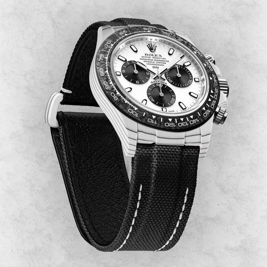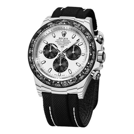 カスタム時計メーカー「DiW(Designa Individual Watches)」から、驚くほど希少な素材を使った特別なモデルが登場しました。その名も**「CARBON ROLEX DAYTONA Irbis 41mm」**。モデル名の「Irbis」は雪豹を意味し、その名の通り、純白のケースが圧倒的な存在感を放つ究極の一本です。