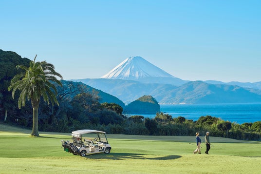 このツアーでは、ガイドが運転するカートに乗って、世界的なゴルフコースとして知られる川奈ホテルの富士コースを周遊します。