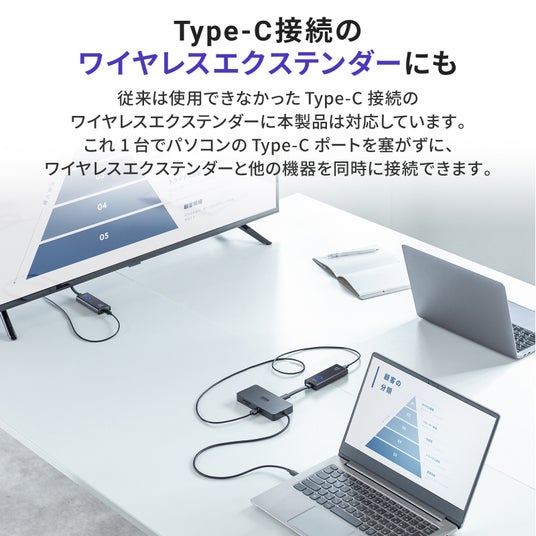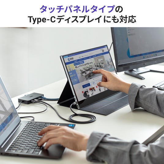 取り回ししやすい約50cmのケーブルをノートパソコンのType-Cポートに差すだけで、すぐに快適な作業環境が手に入ります。