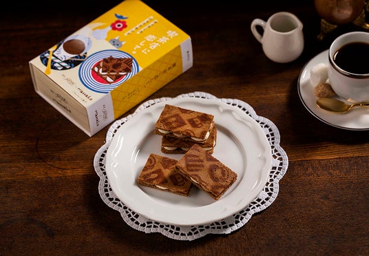 - ティラミスショコラサンド:コーヒーとマスカルポーネ、2つのショコラをザクザク食感の薄焼きクッキーでサンド。口の中でとろける、喫茶店のティラミスを思わせるリッチな味わいです。