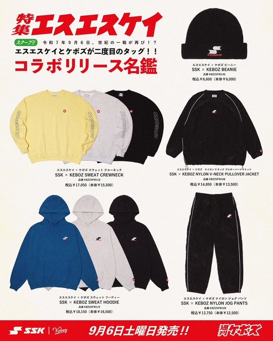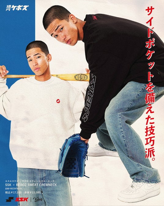 野球用品メーカーのSSKと人気ファッションブランドのKEBOZによるコラボレーション第2弾が発表されました。前回に続き、野球好きなら思わず「クスッ」と笑ってしまうような、遊び心満載のアイテムが登場します。