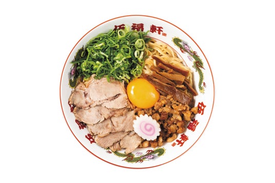背脂黒醤油ラーメンの旨みをそのまま活かした、汁なしスタイルが特徴。卵黄のまろやかさと、たっぷりのネギがアクセントとなり、絶妙なバランスを生み出しています。