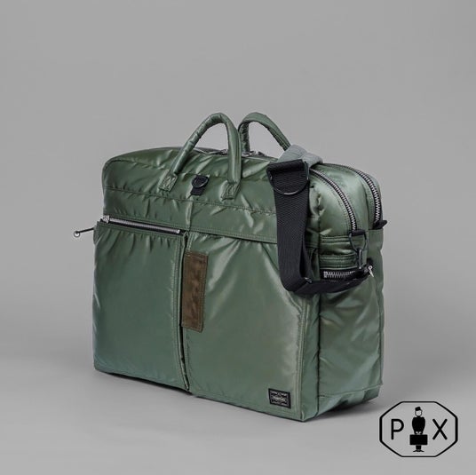 「PX TANKER」は、PORTERの代名詞である「TANKER」シリーズをベースに、フライトジャケット「MA-1」をモチーフにしたオリジナル生地を使用しています。異なる色のナイロンを組み合わせた特別な配色や、内装のミルスペックタグなど、ミリタリーテイストを取り入れた機能的かつ実用的なデザインが魅力です。