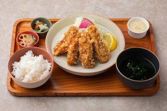 - 愛され続けて10年!: 新宿店で人気No.1だった「牡蠣フライ定食」も楽しめます。