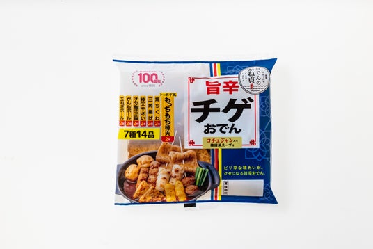 毎年人気のチゲ鍋のつゆをヒントに開発されたこの商品は、韓国風の旨辛いスープと具材を組み合わせた新感覚のおでんです。韓国の練り物「オムク」をイメージしたさつま揚げや、トッポギ風のもっちりとした棒天など、辛さと相性の良い7種14品が詰まっています。