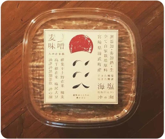 塩は、沖に流れる黒潮を汲み上げて、平釜で薪炊きした自家製塩。これらの原料を使い、酵母も酵素も活かした無添加・非加熱のこだわり抜かれた香り高い麦味噌。