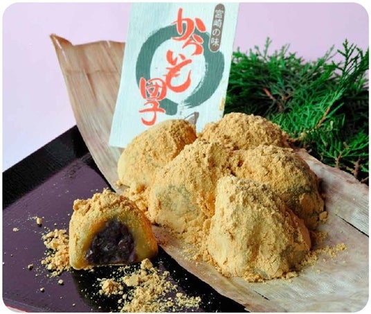 蒸したさつまいもを餅につき込み、甘さ控えめの粒あんを包み込んだ宮崎の郷土菓子。たっぷりのきな粉をまぶし、心がホッと休まるおいしさに。