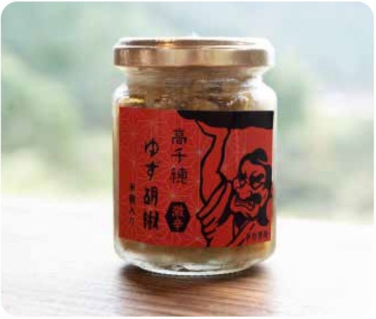 宮崎県高千穂町の山間の一部地域に存在した伝統のレシピを受け継いだ柚子胡椒。ゆずも唐辛子も地元産にこだわり、高千穂の郷土の味がギュッと詰まった一品に。