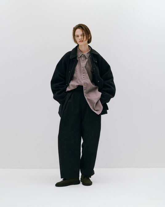 ヴィンテージ加工を施したシャツや、美しいメランジのネルシャツ、カラーネップニットなど、単一な色ではない奥行きのあるカラーが特徴です。さらに、メルトンやヘビーダックといった表情豊かな生地を初採用。自然な風合いに仕上がっているため、どのアイテムもコーディネートしやすく、重ね着の楽しみが広がります。