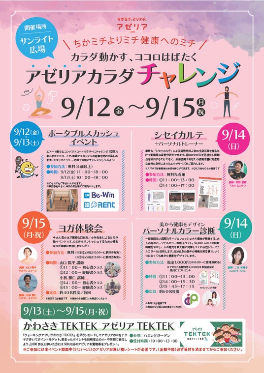 9月12日(金)から15日(月・祝)までは、健康をテーマにしたイベントが開催されます。