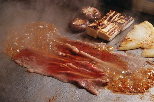 国産牛を鉄板で一枚一枚丁寧に焼き上げる、新しいスタイルのすき焼きです。香ばしく焼き上げたお肉に、特製の割り下を絡めることで、甘辛の奥深い味わいが広がります。お肉は薄くスライスしているため、食べやすく、幅広い世代の方におすすめです。