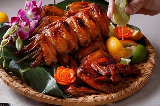 “ガイ”=鶏、“ヤーン”=焼く、という名のとおり、タイ風のスパイシーな焼き鳥。味の決め手は、オイスターソースをベースに五香粉(ウーシャンフェン)を加えた、奥深くも食欲をそそるエスニックな下味。香ばしい皮目と、ジューシーな鶏肉の旨みが口いっぱいに広がります。ライムを絞ったり、チリソースを添えたりと、味変もお楽しみください。