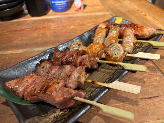 その他にも、朝締めモツを使った串焼きや、信玄鶏のつくね串、加藤ポークの豚バラ巻き串など、こだわりのメニューが豊富に揃っています。