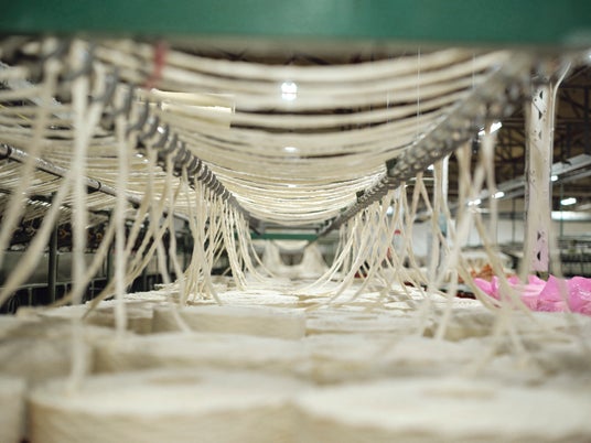 この希少な糸の紡績を担ったのは、大阪の大正紡績。1950年代の古い機械でゆっくりと丁寧に紡ぎ出すことで、柔らかく、毛羽立ちにくいオリジナルの糸を開発しました。