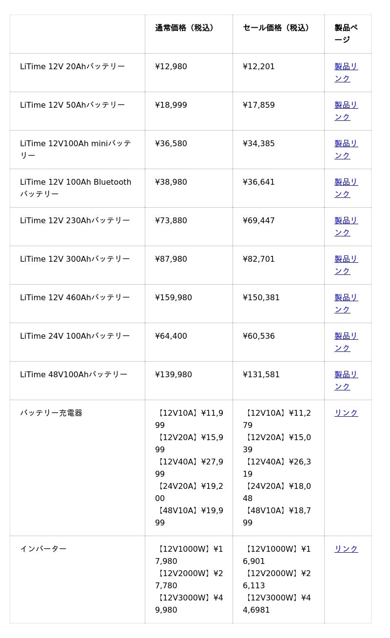 今回のセールでは、キャンピングカーや家庭用蓄電池に最適な大容量バッテリーを中心に、幅広い製品が特別価格で手に入ります。