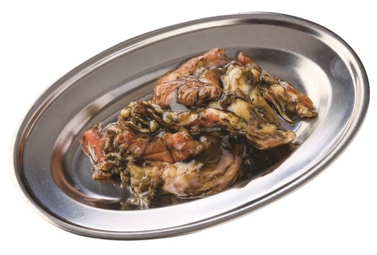 プリっとした食感が魅力の鶏せせりに炭火焼風のタレを絡めたおいで屋の新定番「けむり焼」。しっかり焼いて楽しむのがおすすめです!
