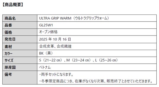 ブリヂストンスポーツは、冬のゴルフを快適にするゴルフグローブ『ULTRA GRIP WARM』を10月16日に発売します。人気の「ULTRA GRIP」シリーズの冬用モデルが、さらに暖かく、使いやすく進化しました。