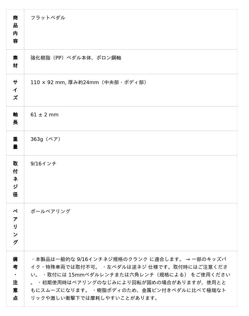 - 樹脂ピン設計: 一体成形の樹脂ピンが靴底を傷めにくく、それでいて街乗り靴からBMXシューズまで、幅広い靴でしっかりとしたグリップ力を確保します。