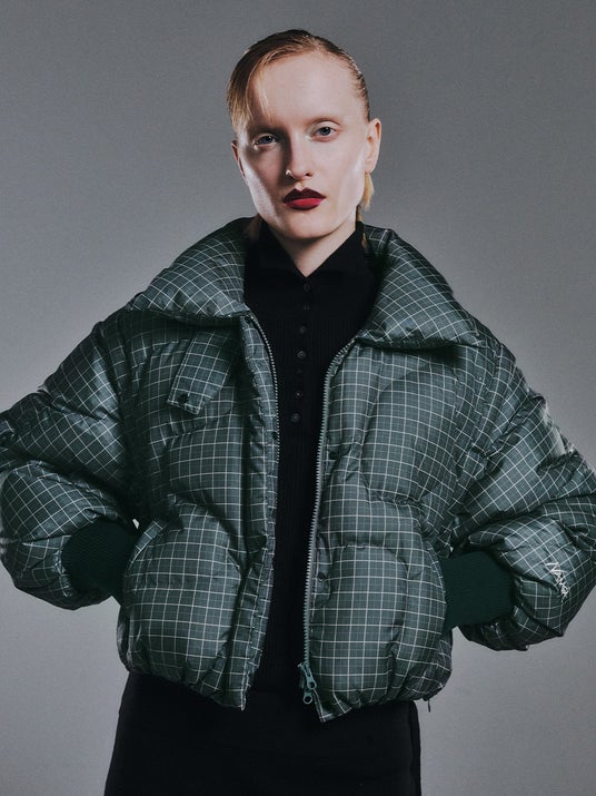 - 特徴: 上記ショートダウンコートのAmeriオリジナルチェック柄バージョン。ウェーブステッチと機能的なディテールはそのままに、撥水性・防風性に優れた素材を採用。