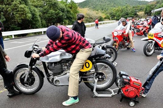- AM7:00よりコースを全面閉鎖し、八代俊二氏の引率のもと約17kmのコースを2回走行し、プロカメラマンが撮影します。
