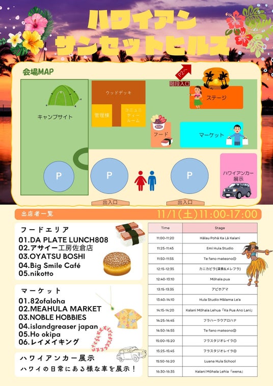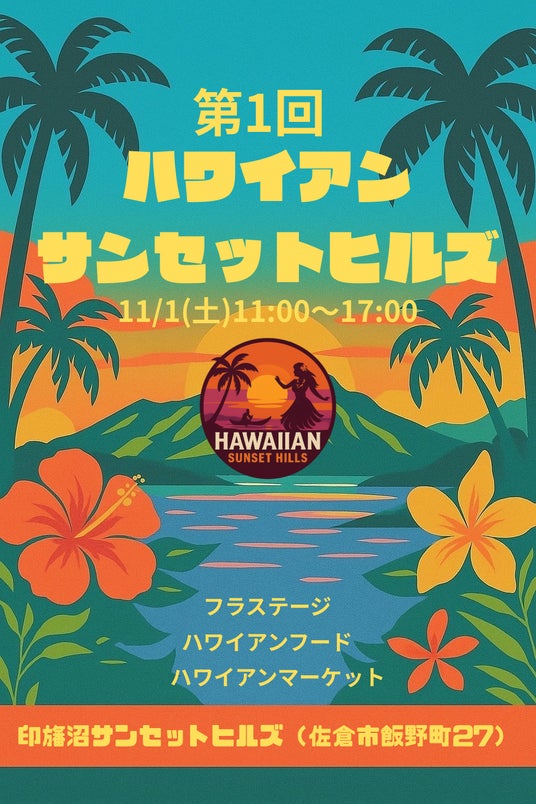 千葉県佐倉市の印旛沼サンセットヒルズにて、ハワイをテーマにした新しいイベント「第1回ハワイアンサンセットヒルズ」が、**2025年11月1日(土)**に初開催されます!