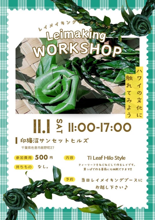 また、マーケットエリアでは、ハワイの文化であるレイメイキングのワークショップや、ハワイアンスタイルのハンドメイドアクセサリー、アメリカ雑貨、輸入雑貨などが並びます。