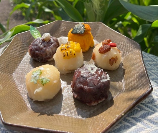 北海道食材を取り入れた、色とりどりのひとくちおはぎ。