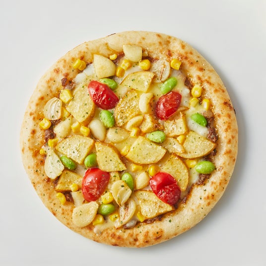 • 【阪神初出品】「北円山まるしぇ」: オリーブオイルで素揚げしたにんにくと北あかりをキーマカレーにのせた**『北海道産にんにくと北あかりのキーマカレーピザ』**(1枚 1,481円)。
