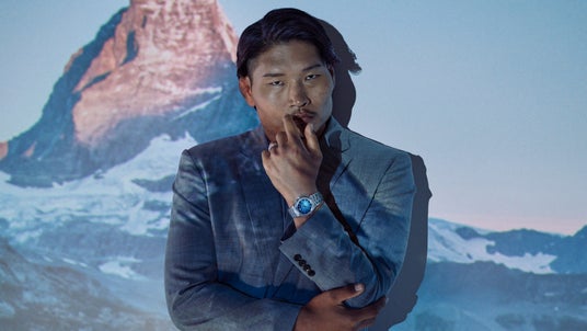 マッターホルンを背に、プラチナ&最軽量新作モデルを着用。「力強さ」と「移ろいゆく美しさ」が融合した幻想的なビジュアル